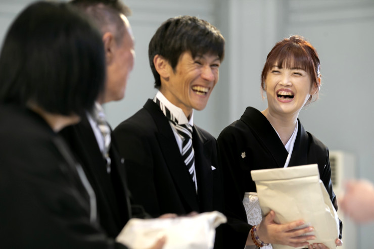お式が結んだ後も愛おしそうに体重米を抱えている親御様
