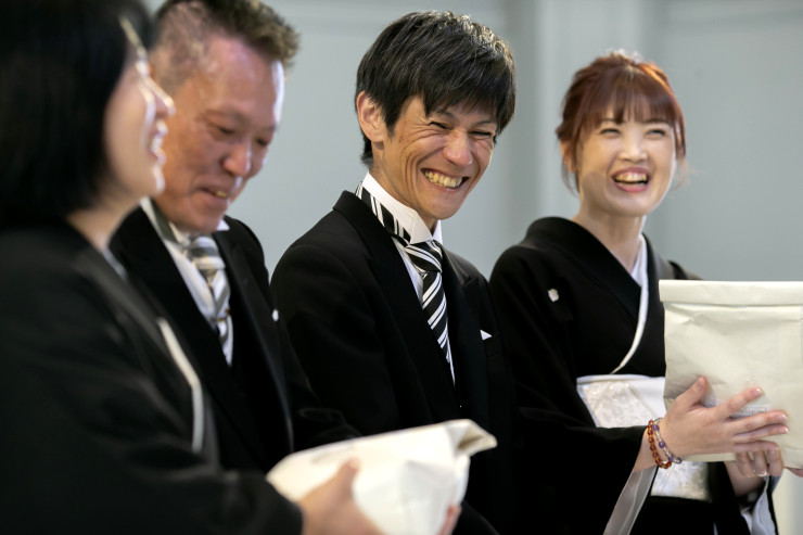 お父様・お母様がそのお米を受け取った瞬間、思わず「こんなに重たかったんだね」と笑顔でおっしゃっていたのがとても印象的でした。 会場もあたたかい拍手と涙に包まれ、ご両親にとってもおふたりが生まれた日の記憶をよみがえらせる特別な贈り物となったように思います。