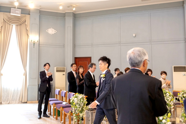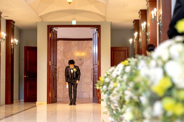 ご準備が整い、ご新郎様がお一人でご入場されます