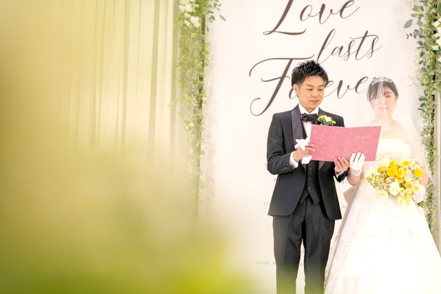 お二人が揃われたところでまずは誓いの詞をお読みいただきます