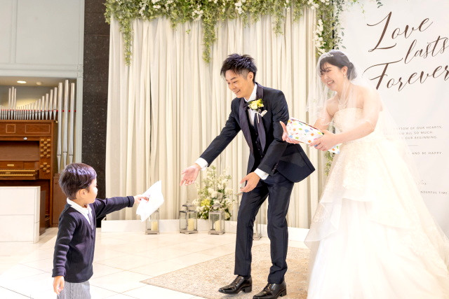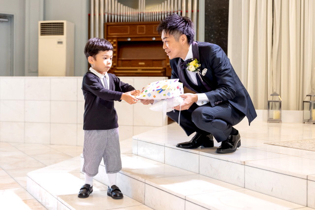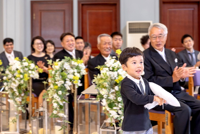 お二人の大切な指輪を運んでくれたのは新郎の甥っ子君💓