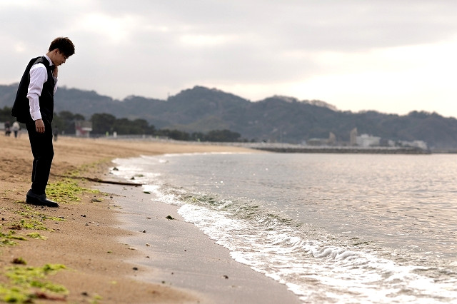 松山のビーチはこの季節は、ほぼプライベートビーチ状態。