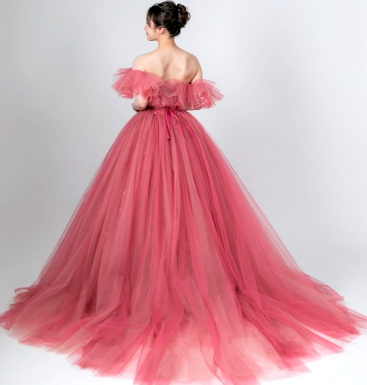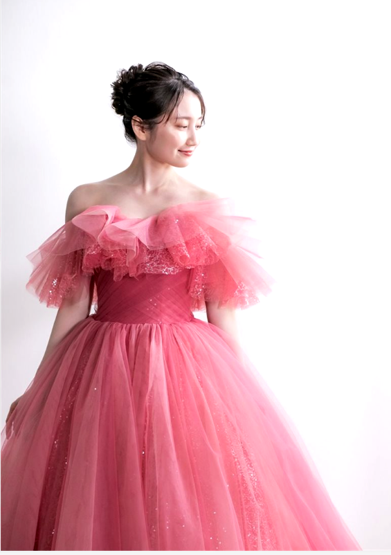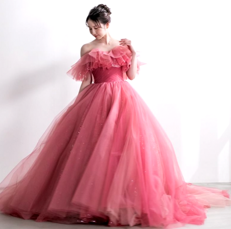 ドラマティックなボリューム感に心ときめくローズピンクのプリンセスドレス💖