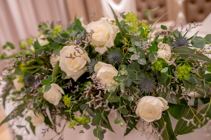 お二人こだわりの特別なレイアウトで、流しテーブルを2本使って