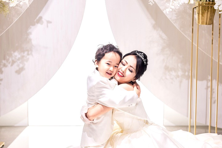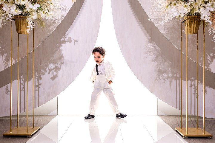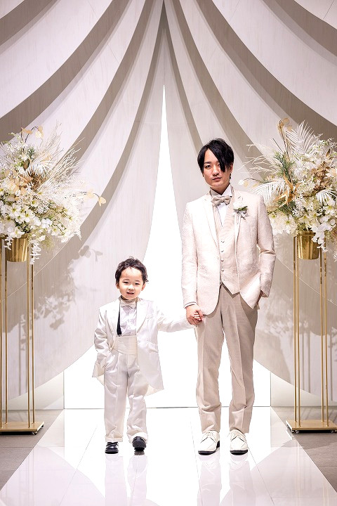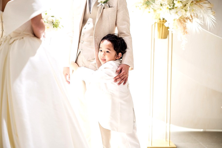 お子様がご新郎様の足元にギューッと抱きついた瞬間も