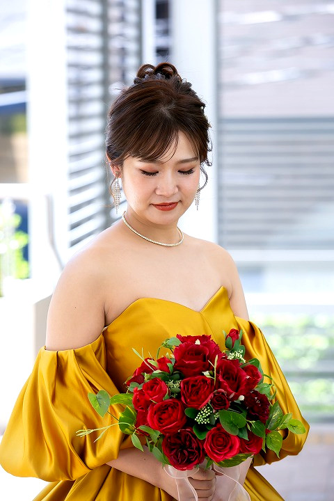 マスタードイエローのお色味がとっても似合うご新婦様!