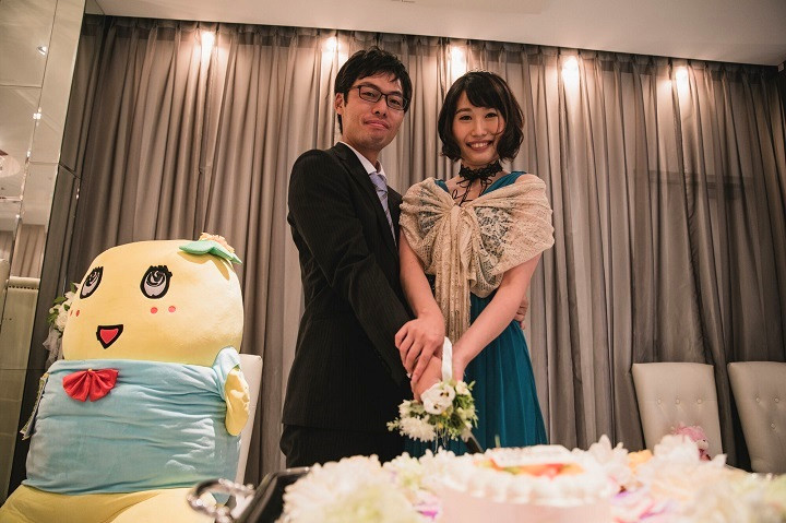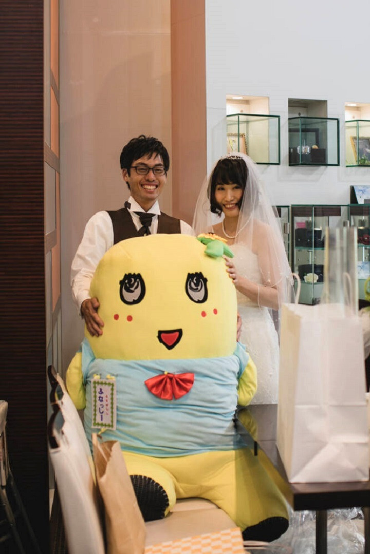 しかも新婦様はふなっしーの服とおそろいの色のドレス☆