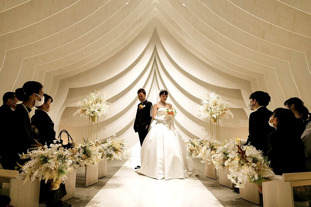 小さな結婚式は全国に22会場。挙式プランは一律、7万7000円(税込)※ 一部店舗を除く
