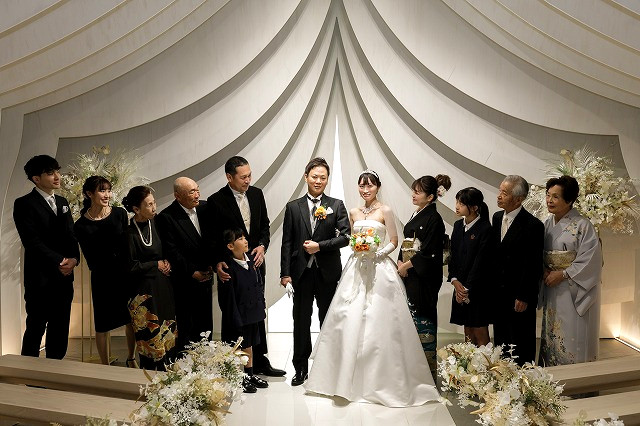 ホテルグランヴィア広島天然芝の中庭に佇むチャペルで正統派かつアットホームセレモニー