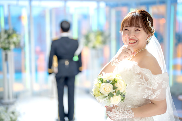 チャペルで待ってる新郎様に初めてドレス姿を披露します♪