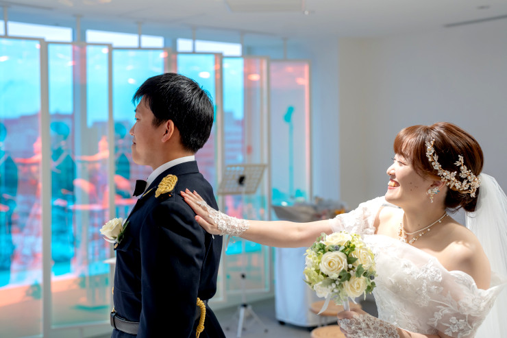 挙式当日にお互いのお衣裳をお披露目するのもいいですよね♪