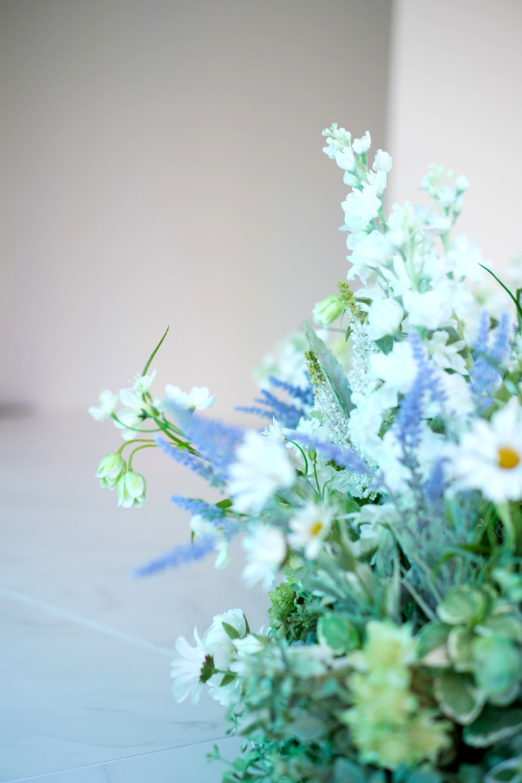 北海道のラベンダー×ライラックをイメージした札幌Lai・Laチャペルには、メイン&バージンロード装花も柔らかく落ち着いた色味でお2人を包み込みます(^^)