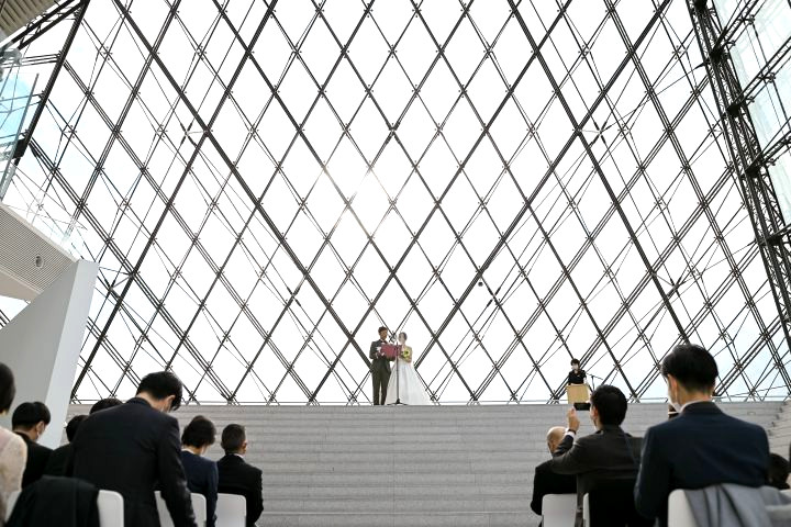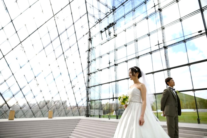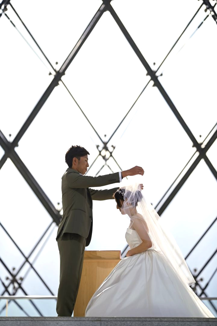 挙式前や挙式後にピラミッド内で開放感抜群のイメージカットの撮影が可能^^!