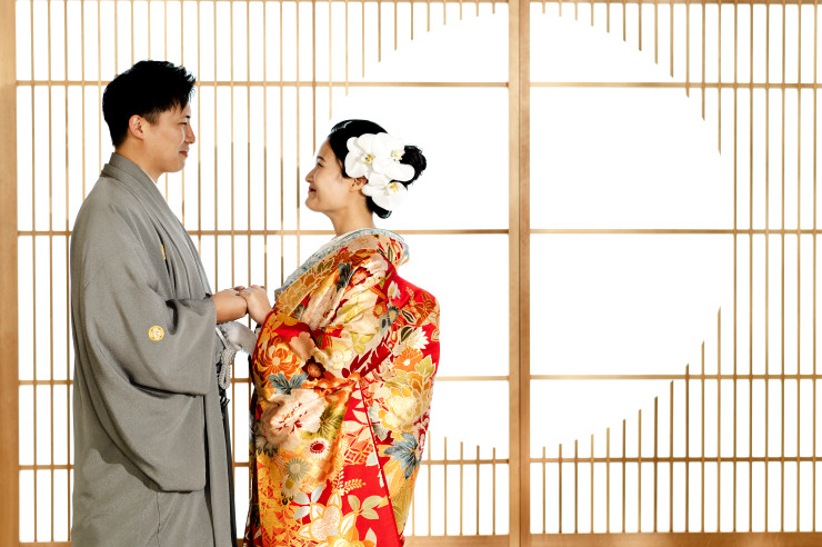 ”シノワズリ”といわれるこちらの背景は和装にピッタリです♡