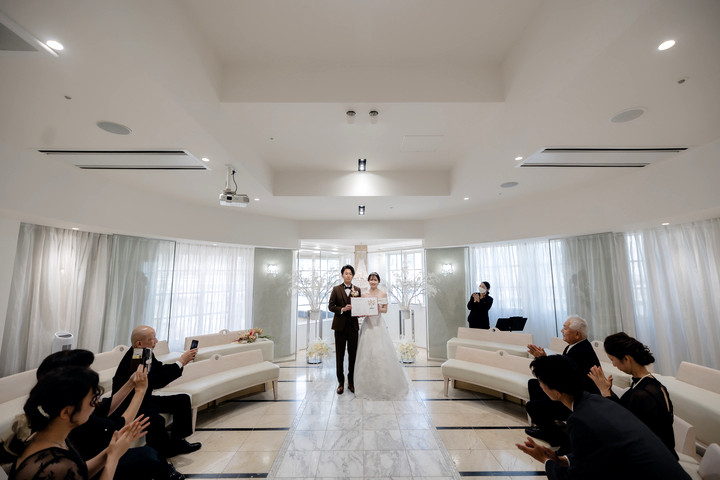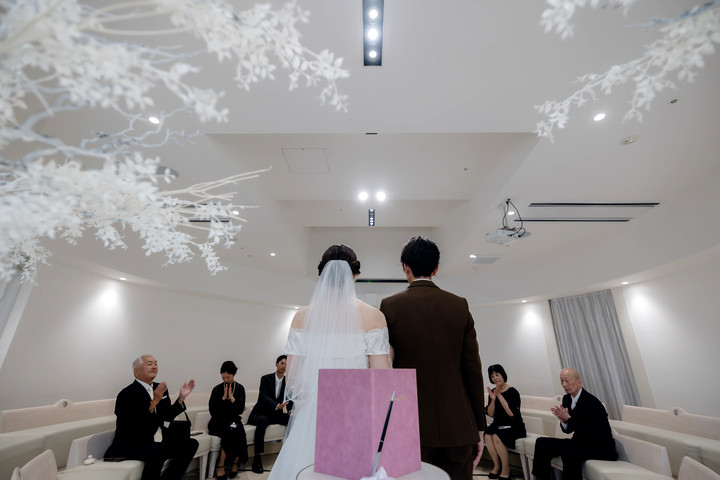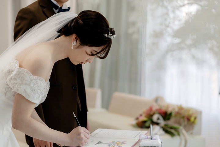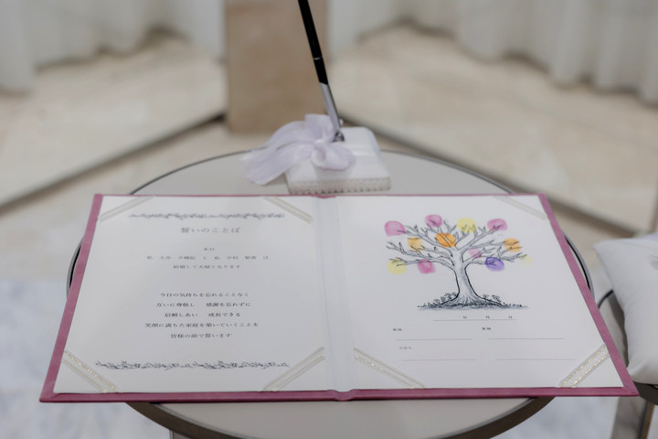 ふたりと家族の大切な結婚証明書が出来上がる瞬間。