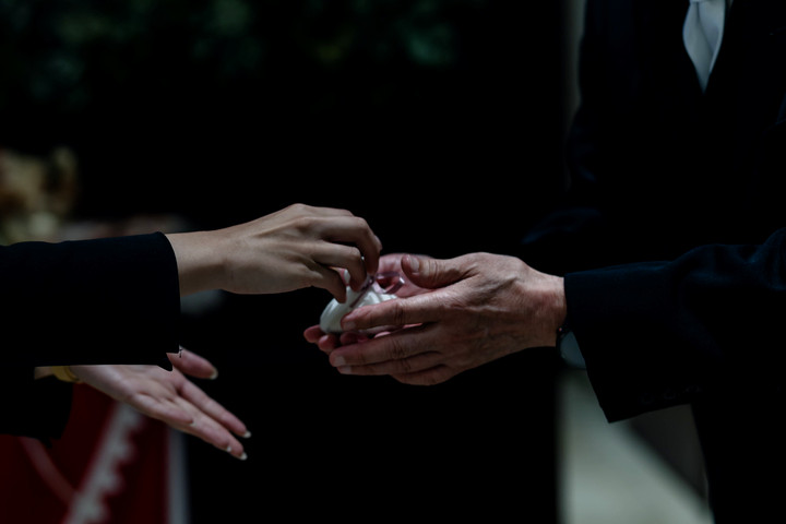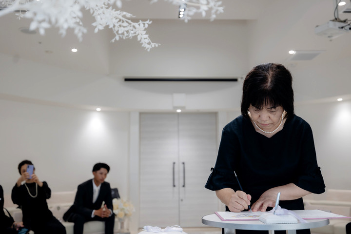 ご家族の前で結婚の誓いを交わし、家族の愛情あふれる誓約書に署名。