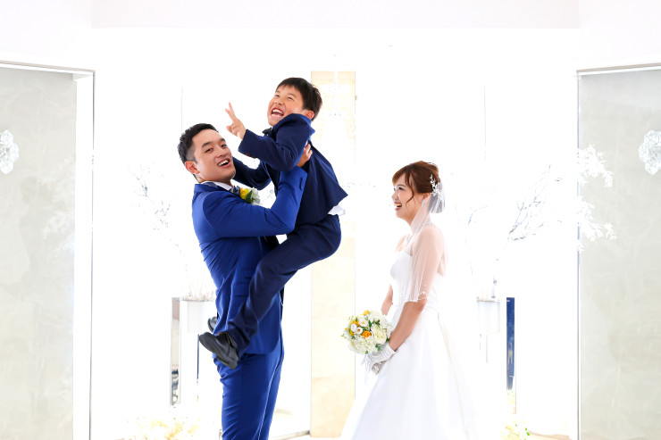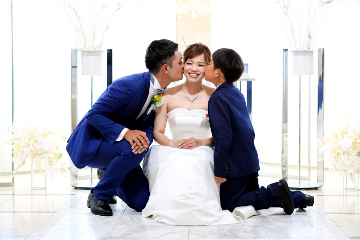 こちらの新郎新婦様は新婦様へ新郎様とお子様にチュ!!