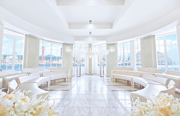 全館オーシャンビュー | モダン&スタイリッシュな円形式場、海の見えるお食事会場 |
