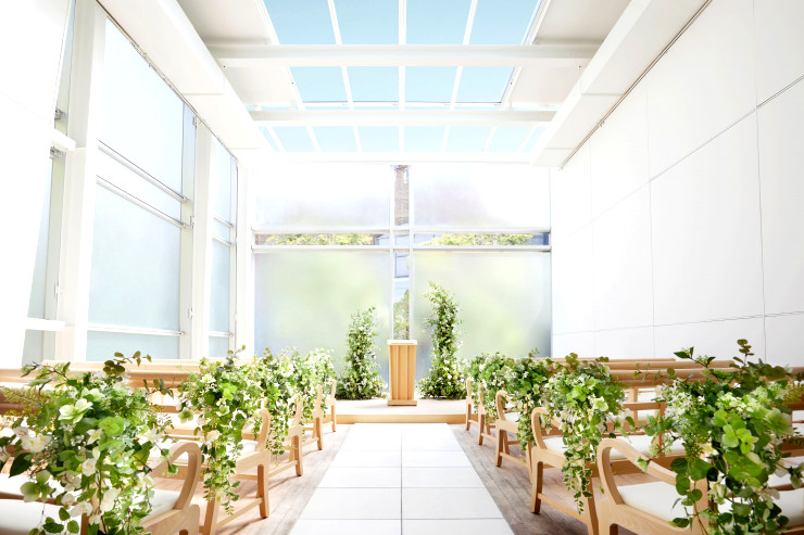 ~緑に囲まれ、自然光がはいる開放的なチャペル~
