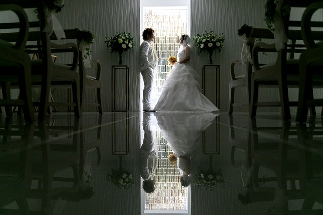 パレスへいあんステンドグラスに彩られて幻想的な教会式を