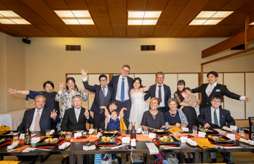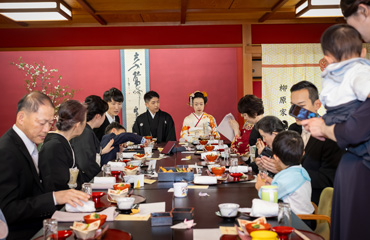 神社で挙式の後は、「家族や親族、または友達だけで」など少人数でアットホームなお食事会・パーティが可能。
