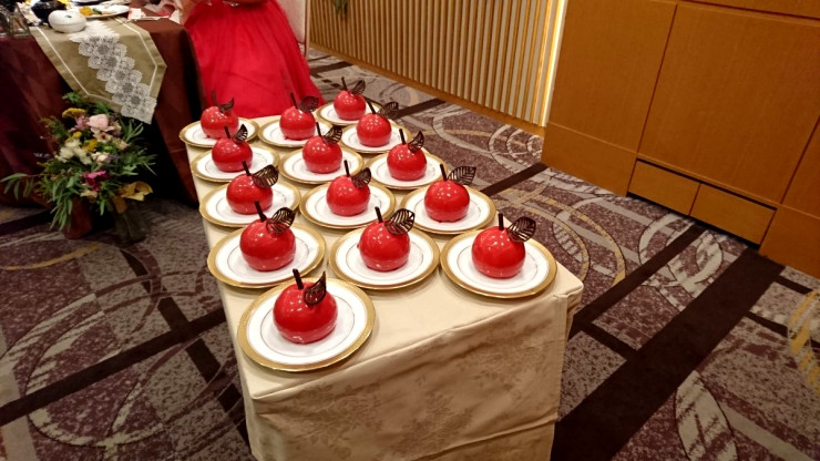 ゲストの方へのケーキもオリジナルのミニリンゴケーキ♪