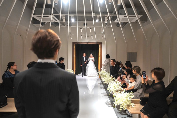 ホテル日航大阪心斎橋駅直結の好立地と、関西有数の長さのバージンロード
