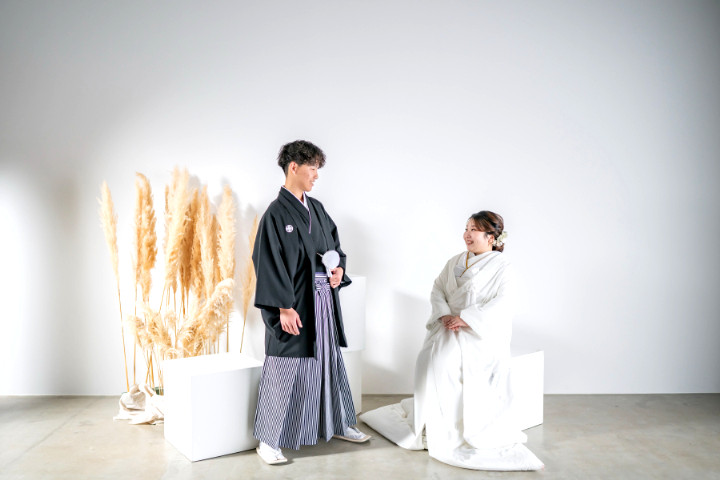 熊本店のスタジオでは和装によく似合う背景やシンプル&モダンな背景、自然光の入るブースなどバリエーション豊富な撮影が叶います!
