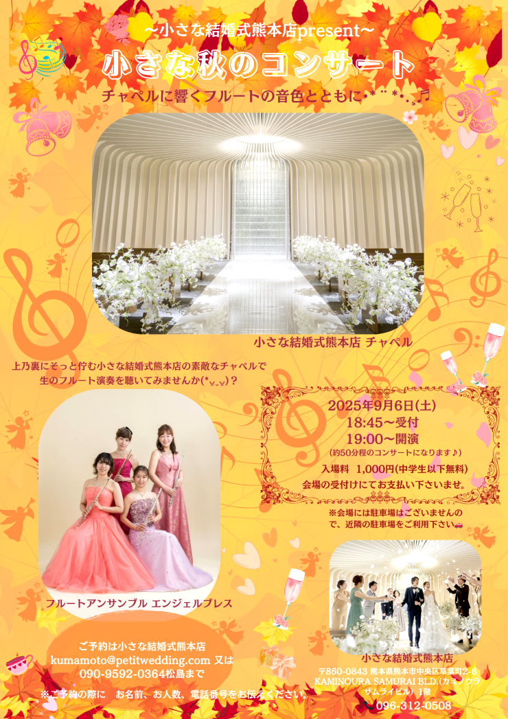 熊本店からチャペル内でのフルートコンサートのご案内です。
