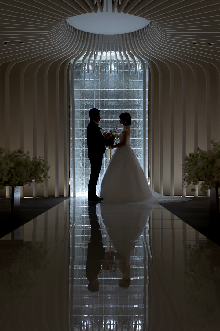 パレスへいあんステンドグラスに彩られて幻想的な教会式を