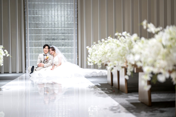 和装の後はチャペル&併設のフォトスポットでのドレス撮影をお楽しみいただいています。