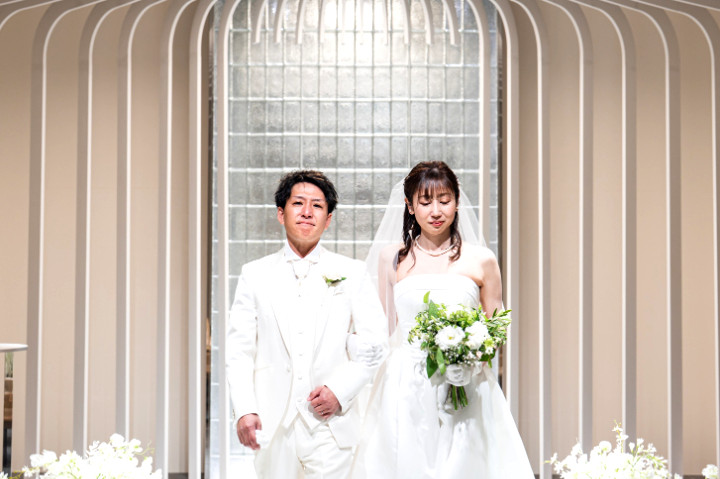 パレスへいあんステンドグラスに彩られて幻想的な教会式を