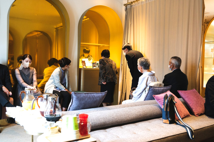 お待合でウェルカムグッズを眺めるゲストの方々