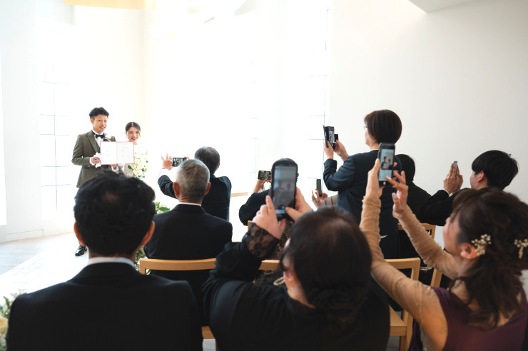 小さな結婚式では参列された方々が携帯電話やカメラで素敵な瞬間を撮影していただけます