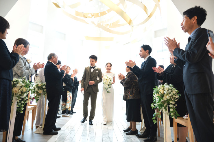 お二人とゲストの皆さまとの距離も近く、笑顔に溢れた温かい挙式となりました。
