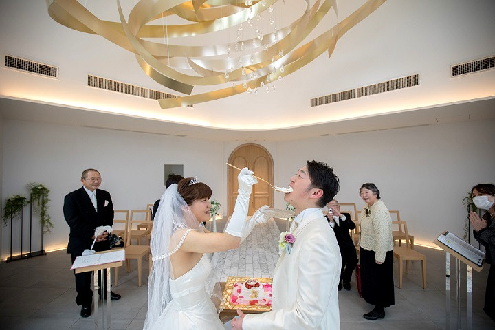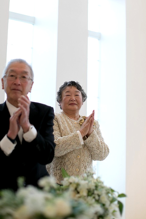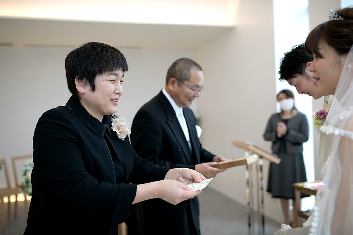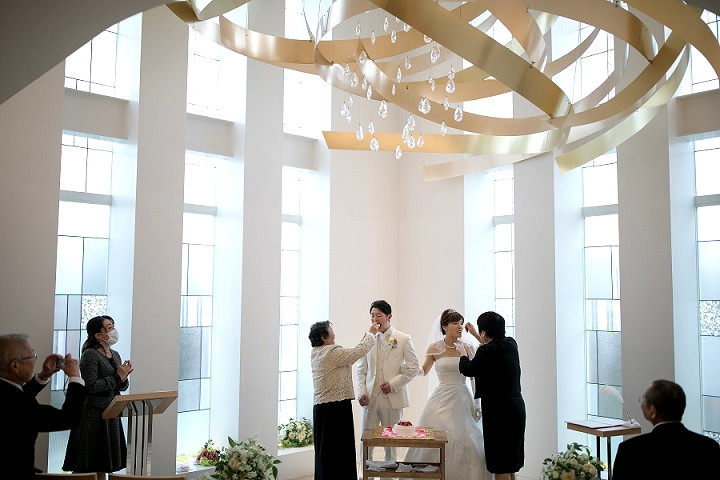 今回は コロナ禍ということもあり 両家の親御様と新郎新婦の6名様でのお式です