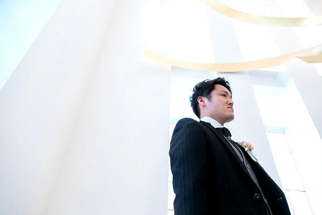 挙式前ですが、緊張も見せず爽やかな表情です^^