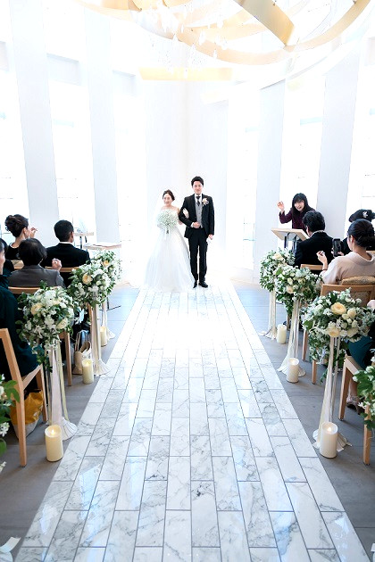 ホテル日航大阪心斎橋駅直結の好立地と、関西有数の長さのバージンロード