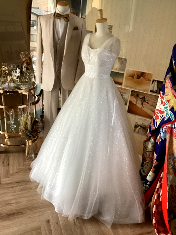 360°に煌めく星空を纏ったようなキラキラドレスです。