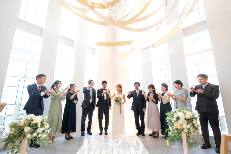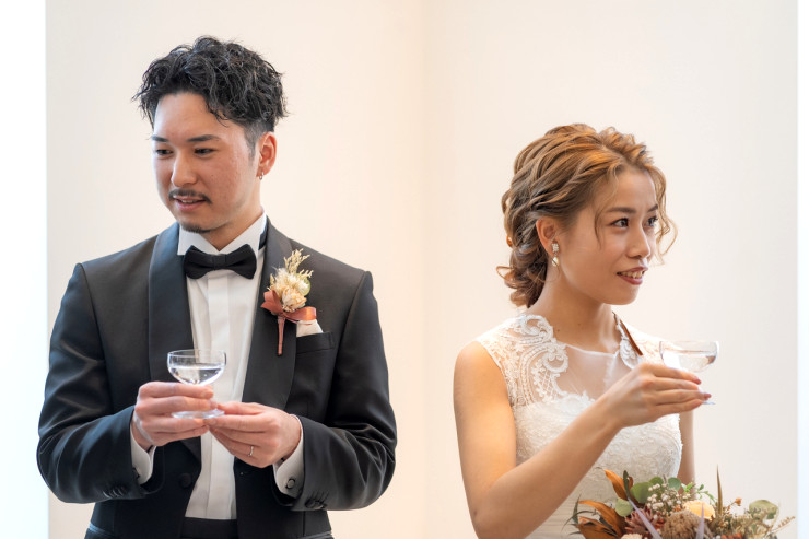 グラスとグラスを合わせる音は「魔除け」とも言われ、お二人を守ってくれるとも言われます✨
