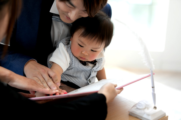 誓約書のサインは皆様を代表してお二人のお子様からかわいい手形を♪