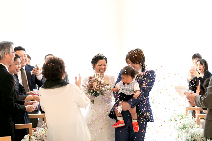 さらにリングボーイくんにフラワーガールちゃんも一緒の笑いがあふれる素敵な入場でした!
