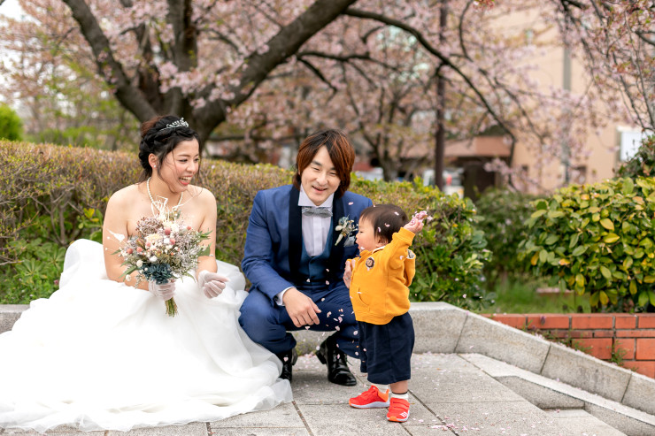 今回ご紹介させていただくのは、桜と新緑のちょうど間に挙式をされたお二人です。