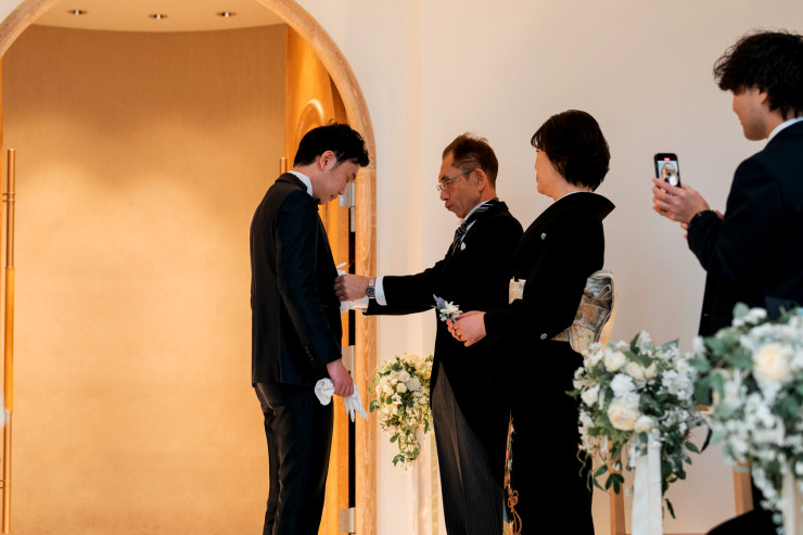 横から親御様を見ている新郎新婦がとても可愛らしかったです🥰