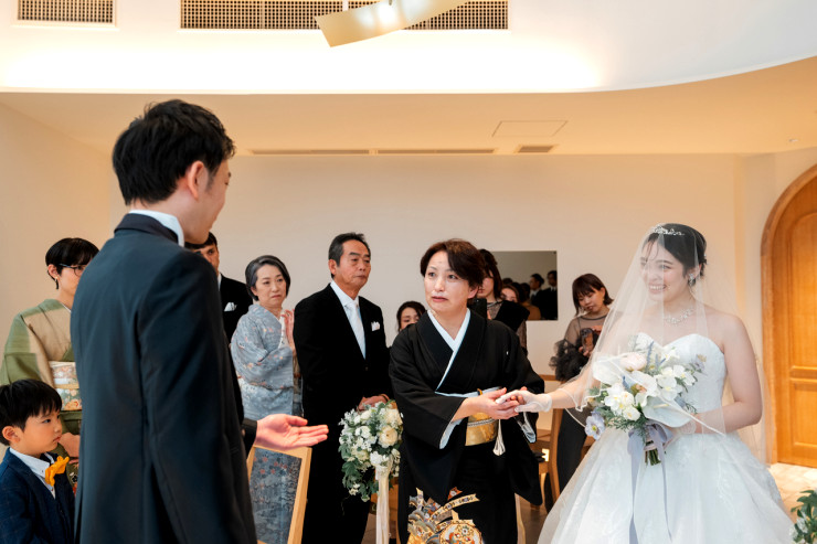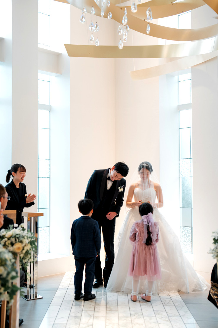 姪っ子さんと甥っ子さんからしっかり指輪を受けっとっていただいた後は指輪交換となります