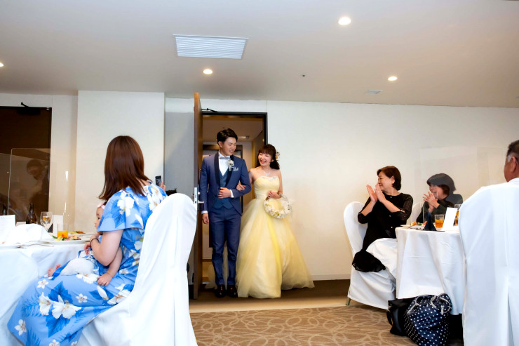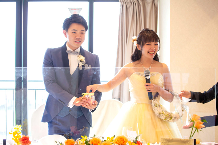 披露宴の最初には、とても珍しいコロナ渦らしい演出が…!