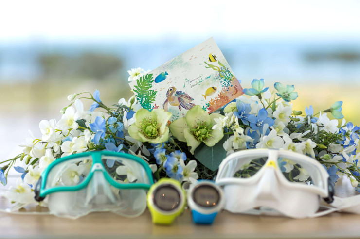 ウェルカムグッズやビーチ撮影には、腕時計やマスクなど