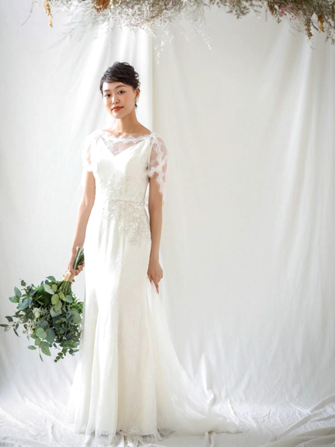 総レースのソフトマーメードラインスタイルのお衣装で、