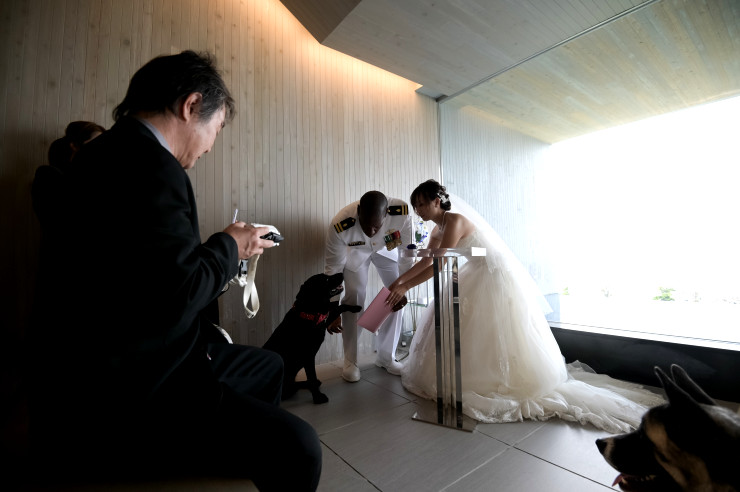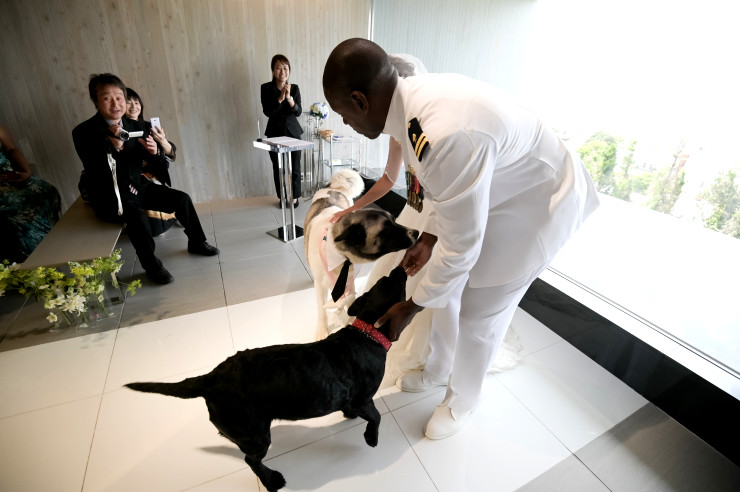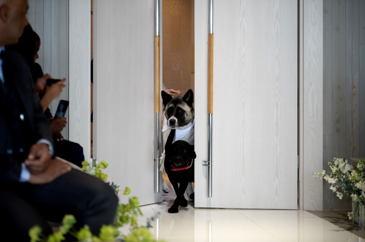 ワンちゃんをご列席様に預けて