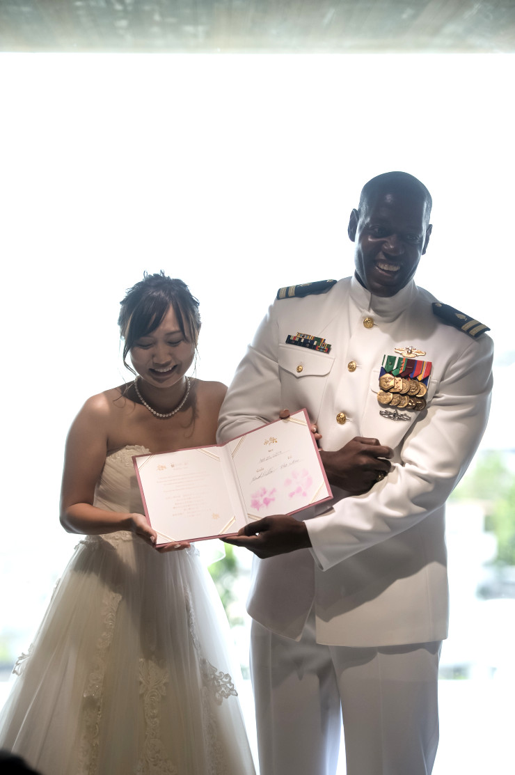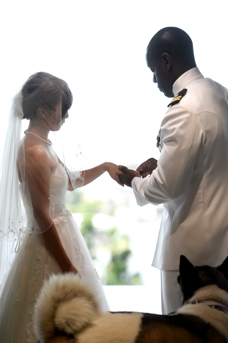 誓約書に署名中もお二人の横をぴったりと離れません^^